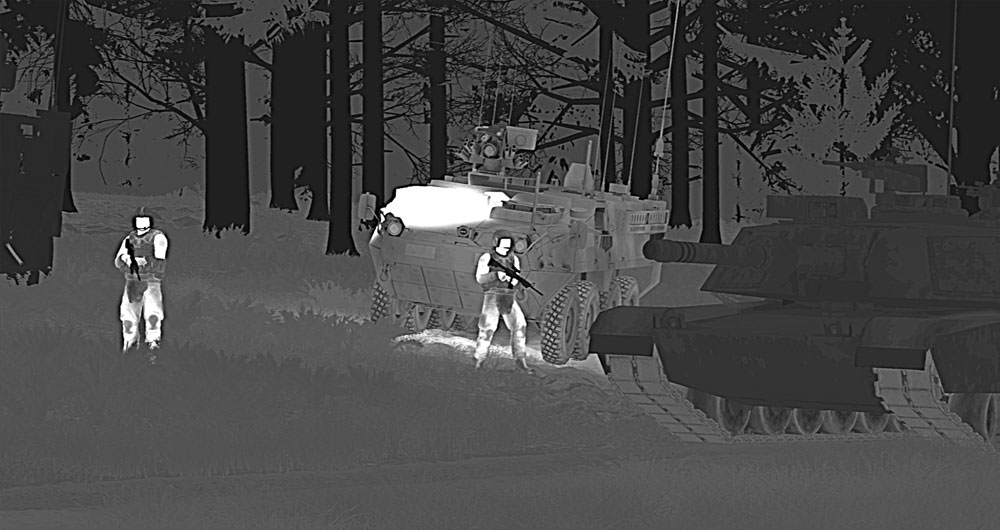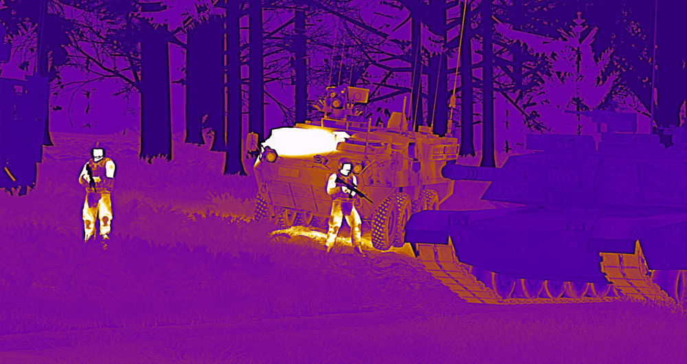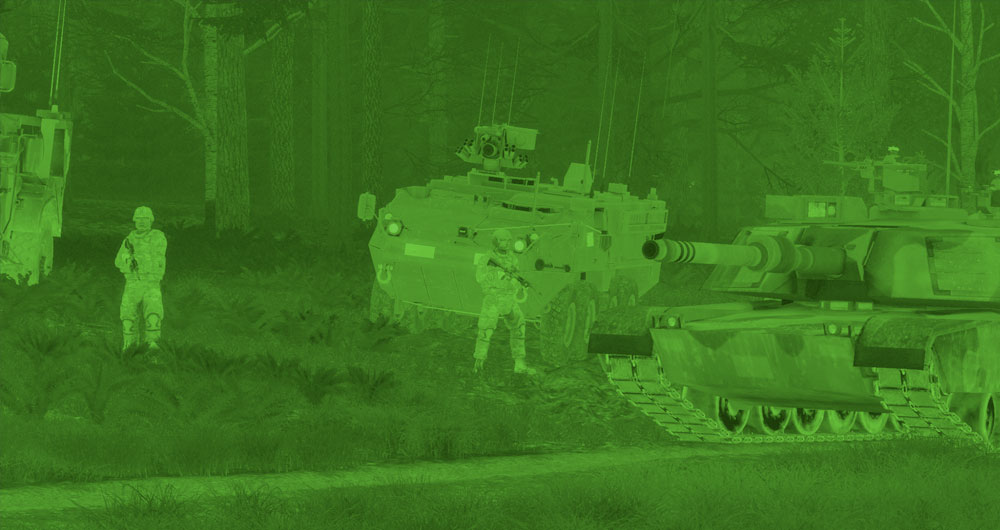 Electro-optical sensors are the primary sensors used on drones to provide real-time targeting feedback and data for autonomous systems. VBS4 includes optical, infrared, and thermal views, giving the flexibility to switch between these views as needed.