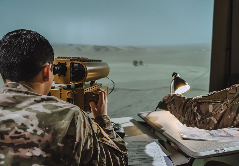 The simulation and imagery powering this virtual world is supplied by VBS4, which completes the package, providing all of the virtual assets at the necessary exceptional fidelity for this application, and the software tools required for CFF simulation suitable for the highly demanding Forward Observer (FO)/Joint Forward Observer (JFO) training.