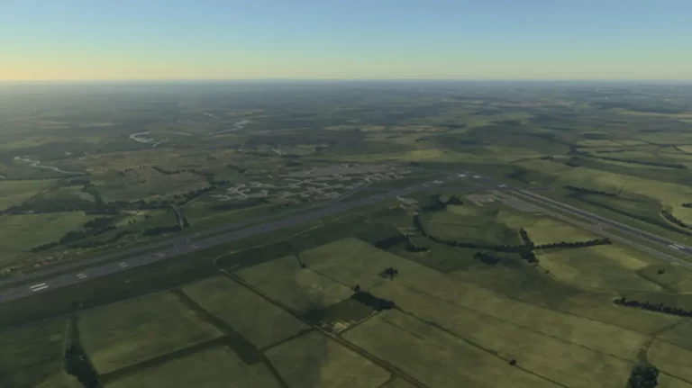 The download adds 8,951 procedurally created airfields using real-world data. Each airfield includes taxiways, tarmac, heliports with the correct line-markings, and common Federal Aviation Authority (FAA) approach lighting systems such as runway, taxiway, tarmac, and PAPI lights.